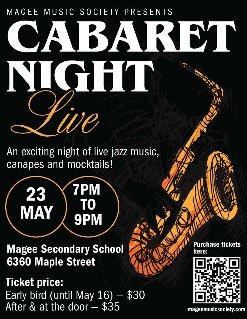 Cabaret Night 2025! by mageemusic Posted on May 13, 2025 Image Share this: Click to share on X (Opens in new window) X Click to share on Facebook (Opens in new window) Facebook Like Loading... Related