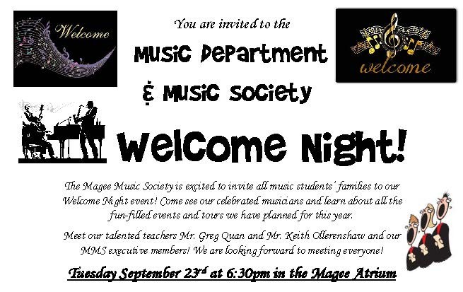 Music Department and Music Society Welcome Night! by mageemusic Posted on September 22, 2025 Image Share this: Click to share on X (Opens in new window) X Click to share on Facebook (Opens in new window) Facebook Like Loading... Related