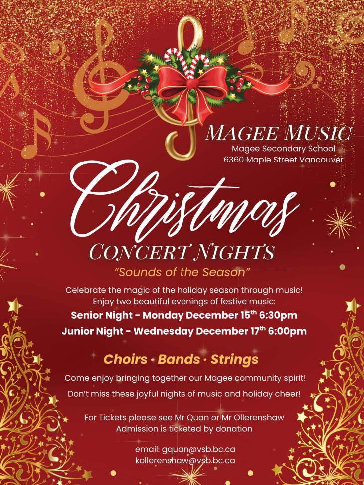 We would love to see you at our fabulous Christmas Concerts! Please email us for tickets or fill out the attached form and send it back to us!
